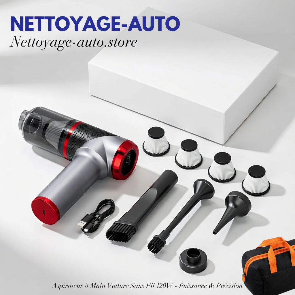 L'aspirateur voiture portable représente la solution idéale pour maintenir un habitacle propre sans contrainte. Ce modèle compact combine puissance d'aspiration et facilité d'utilisation. Les débris, miettes et poussières n'ont aucune chance face à ce petit appareil redoutable. Sa conception ergonomique permet d'atteindre les zones difficiles d'accès sous les sièges et dans les interstices. La batterie rechargeable offre une autonomie suffisante pour nettoyer l'intérieur complet en une seule charge. Les différents embouts fournis s'adaptent à toutes les surfaces de votre véhicule. Rangement facile dans la boîte à gants ou le coffre. Associez-le à notre brosse de nettoyage intérieur pour des résultats optimaux.